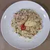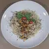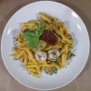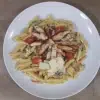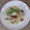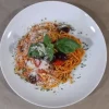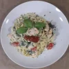 mit Scampi Champignons getrocknet Tomaten, Rucola