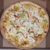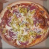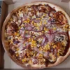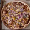 mit BBq Sauce, Bacon, Champignons, Mais, Zwiebeln