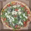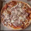 mit Bacon, Salsiccia, Edelkäse und Pistazien