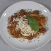 mit Geflügel Hackbällchen, Auberginen, Mozzarella-käse und Tomatensauce
