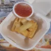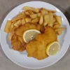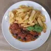 200 gr. Hähnchenfleisch und Currysauce mit Pommes
