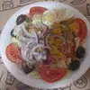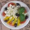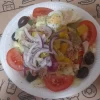 gemis. Salat mit Fetakäse, Oliven, Peperoni, Zwiebeln