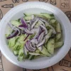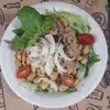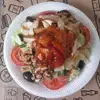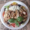 gemis. Salat mit Thunfisch, Ei, Oliven, Peperoni, Zwiebeln