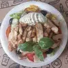 gemischter Salat mit Hühnerstreifen, Ei, Oliven und Parmesan